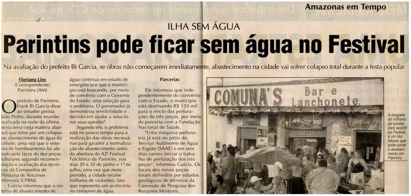Parintins Pode Ficar Sem Água no Festival