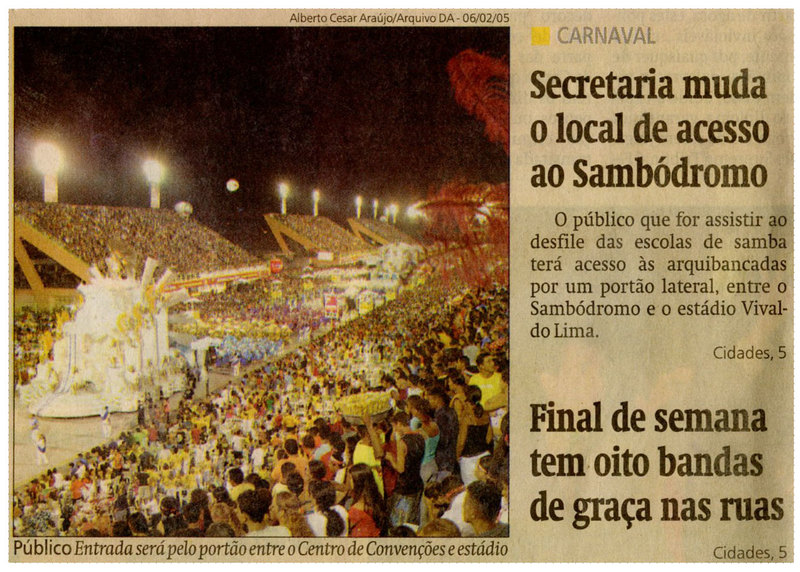 Secretaria Muda o Local de Acesso ao Sambódromo
