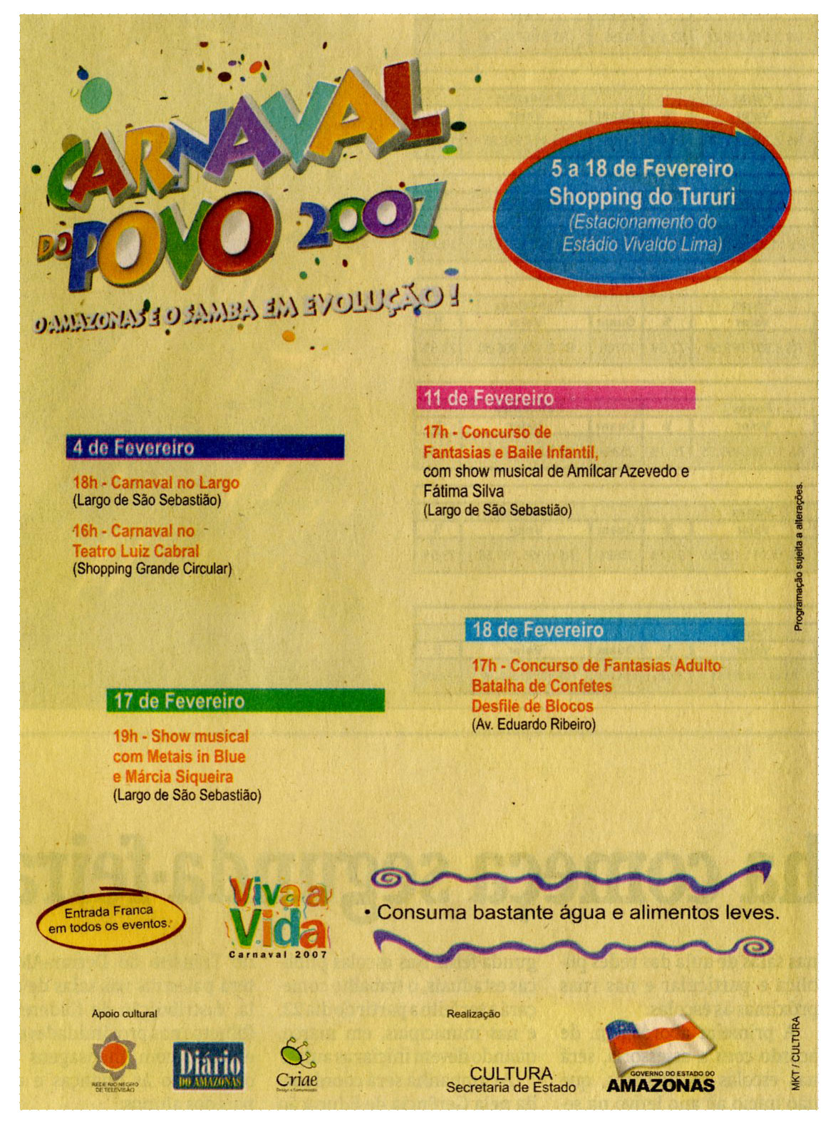 Carnaval, Largo São Sebastião, Teatro Luiz Cabral, Eduardo Ribeiro, Show, Sec, Governo do Estado