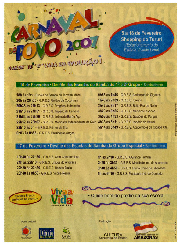 Carnaval, Desfile, Escola de Samba, Grupo Especial, 1º e 2º Grupo, Sambódromo, Shopping do Tururi