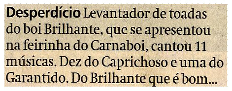 Levantador de Toadas, Boi Brilhante, Carnaboi, Caprichoso, Garantido