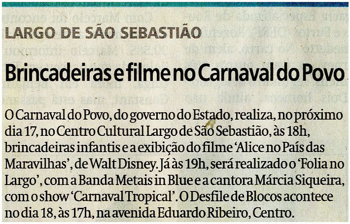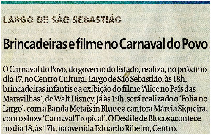 Largo São Sebastião, Carnaval do Povo, Brincadeiras, Filme, Blocos