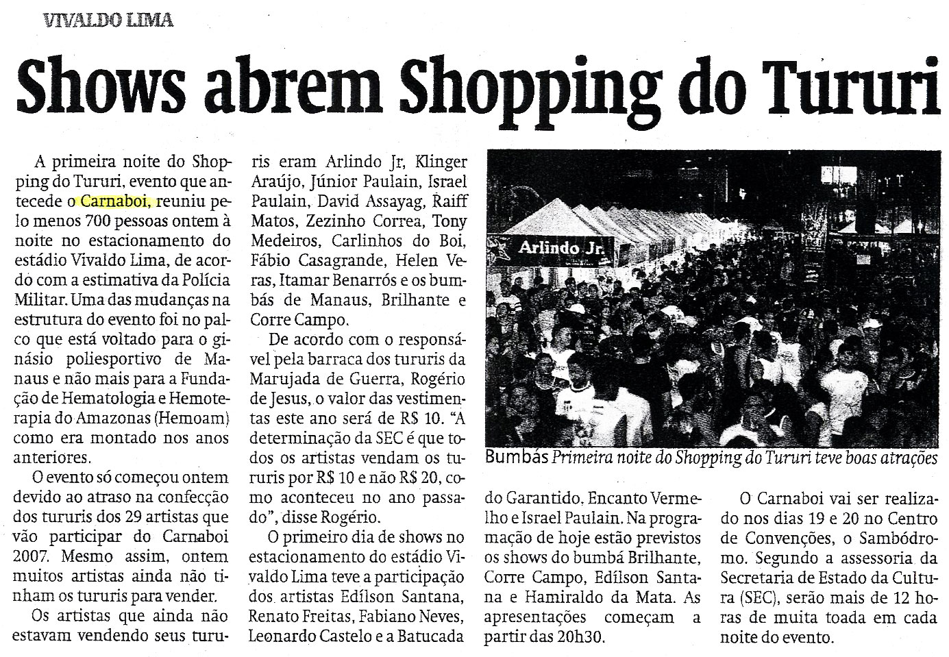 Shopping do Tururi, Carnaboi, Vivaldo Lima, Shows, Sec
