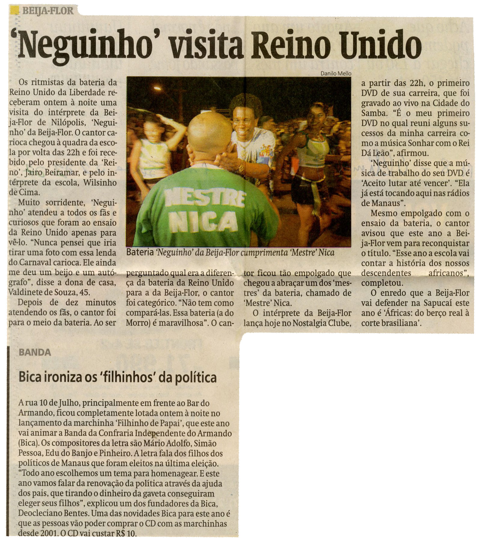 Ritmista, Reino Unido, Beija Flor, Banda da Bica, Bar do Armando