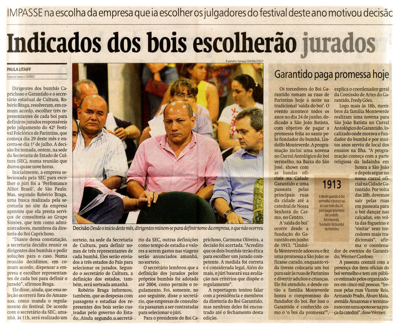 Garantido, Caprichoso, Robério Braga, Jurados, Festival de Parintins, Sec, Saída do Boi, São João Batista, Promessa