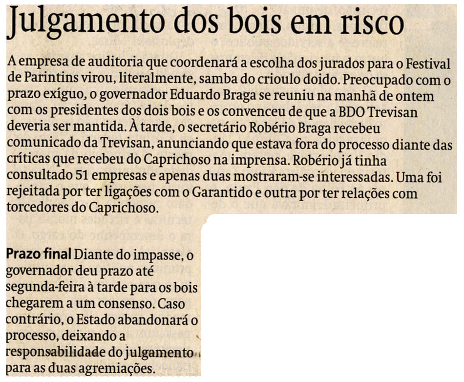 Jurados, Festival de Parintins, Eduardo Braga, Robério Braga, Caprichoso, Agremiações