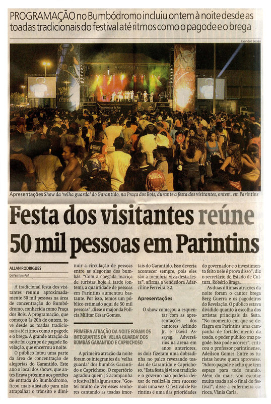 Festa do Visitante, Programação, Bumbódromo, Robério Braga, Festival de Parintins