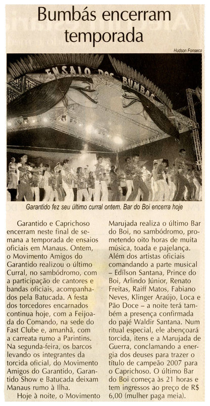 Encerramento, Garantido, Caprichoso, Curral, Bar do Boi