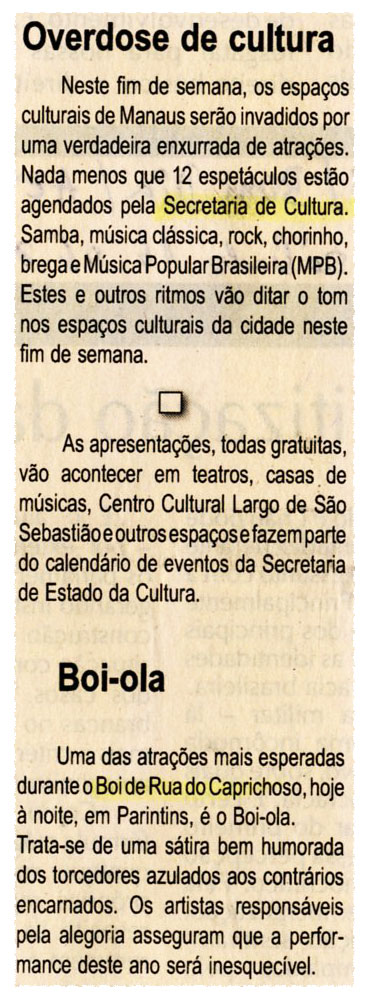 Espaços Culturais, Atrações, Sec, Casa de Música, Largo São Sebastião, Boi de Rua, Caprichoso, Parintins