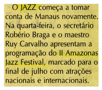 Festival de Jazz, Robério Braga, Ruy Carvalho, Maestro, Programação
