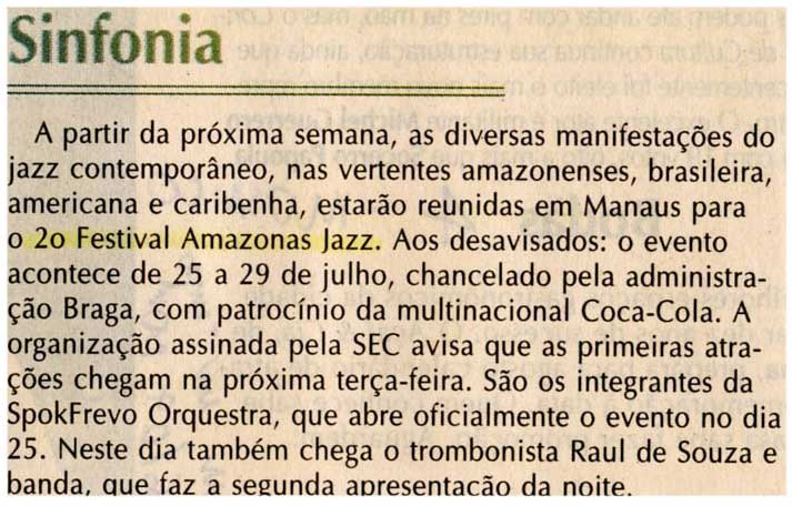 Jazz Contemporâneo, Evento, Patrocínio, Coca Cola, Sec, Atrações