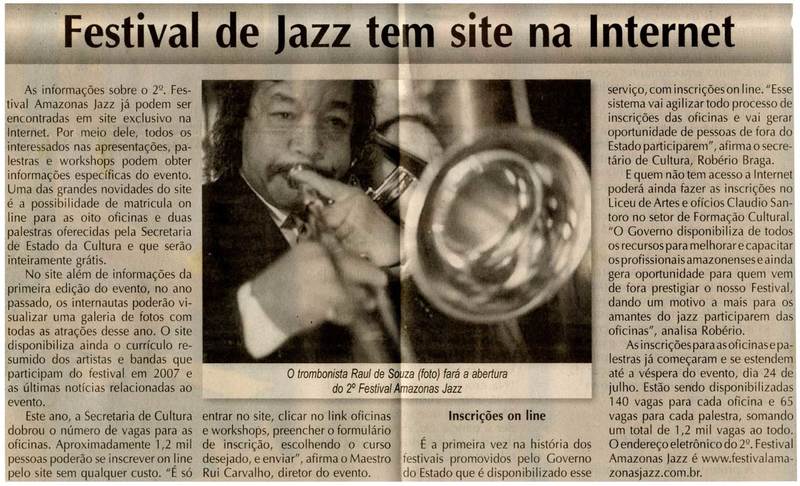 Festival de Jazz, Site, Internet, Informações, Eventos, Sec, Governo do Estado, Robério Braga, Oficinas, Palestras