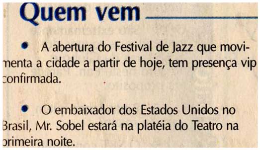 Festival de Jazz, Mr. Sobel, Embaixador, EUA, Teatro Amazonas