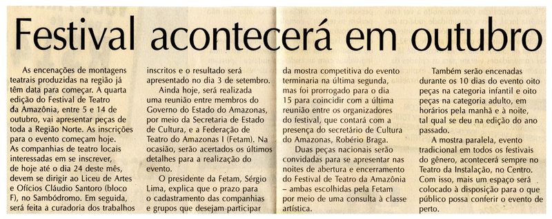 Festival de Teatro, Peças, Inscrições, Evento, Liceu de Artes e Ofícios, Cláudio Santoro, Sambódromo, Governo do Estado, Sec, Fetam