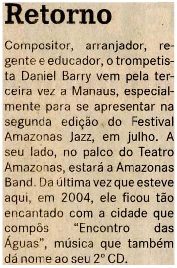 Compositor, Daniel Barry, Festival de Jazz, Teatro Amazonas, Amazonas Band