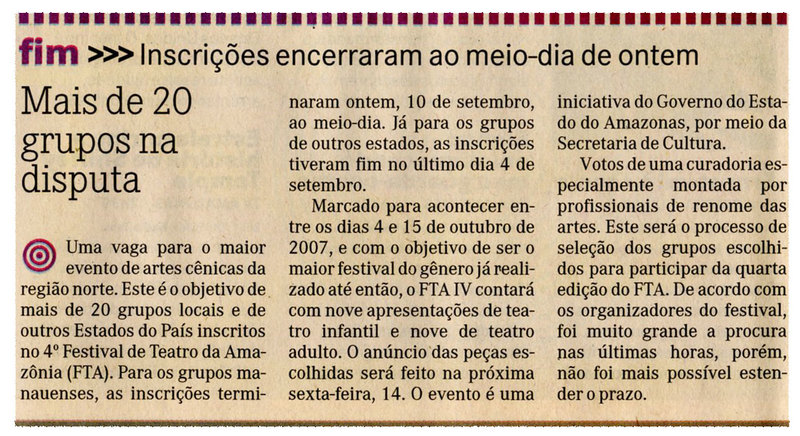 Inscrições, Evento, Artes Cênicas, Festival de Teatro