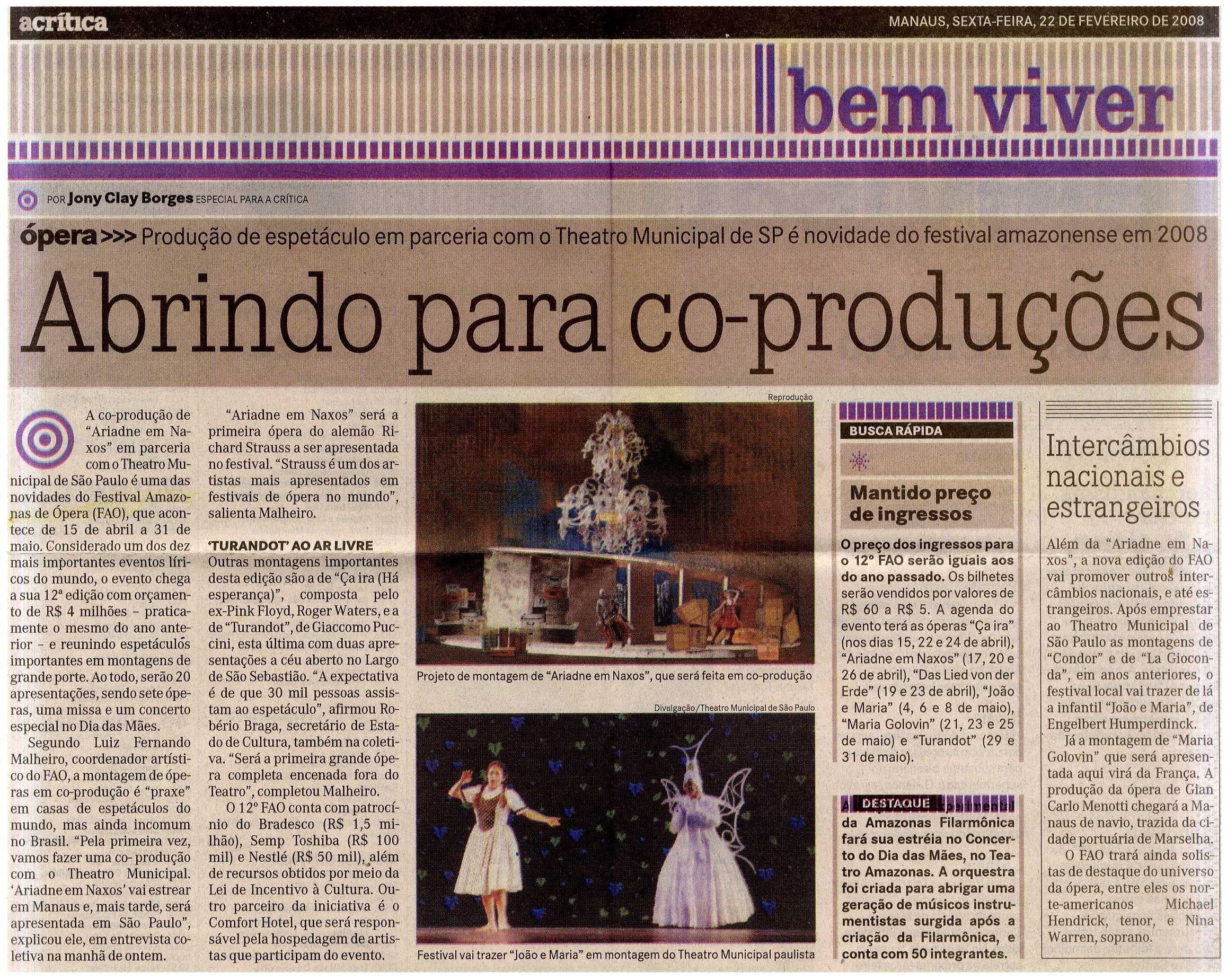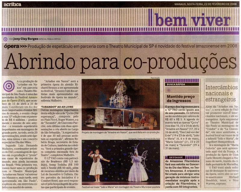 Festival de Ópera, Parceria, Theatro Municipal, Robério Braga, Luiz Fernando Malheiro