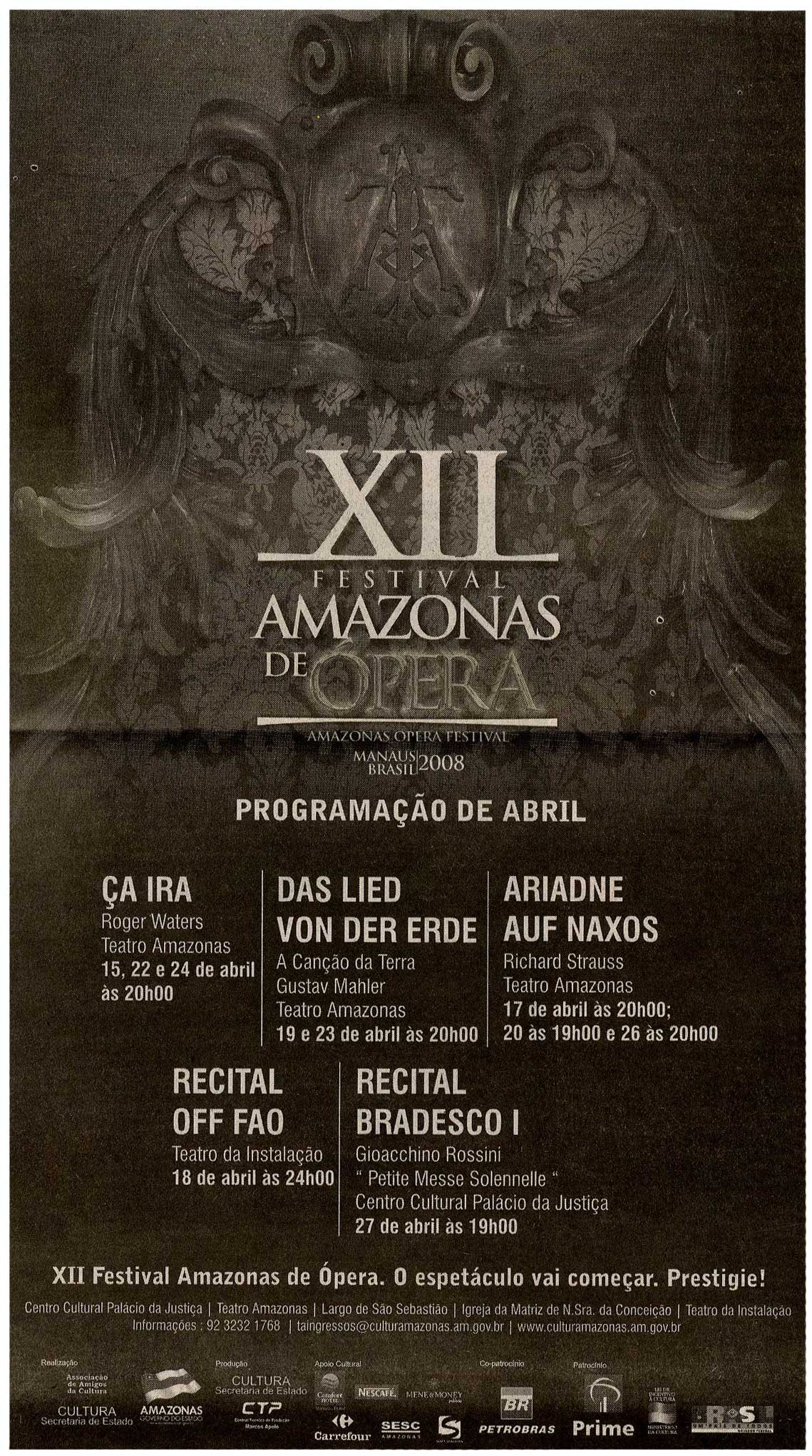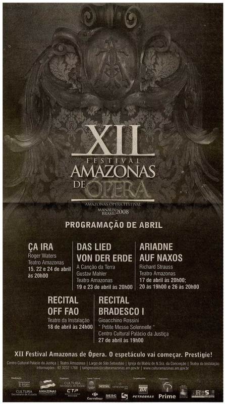 Festival de Ópera, Programação, Teatro Amazonas, Sec, Governo do Estado