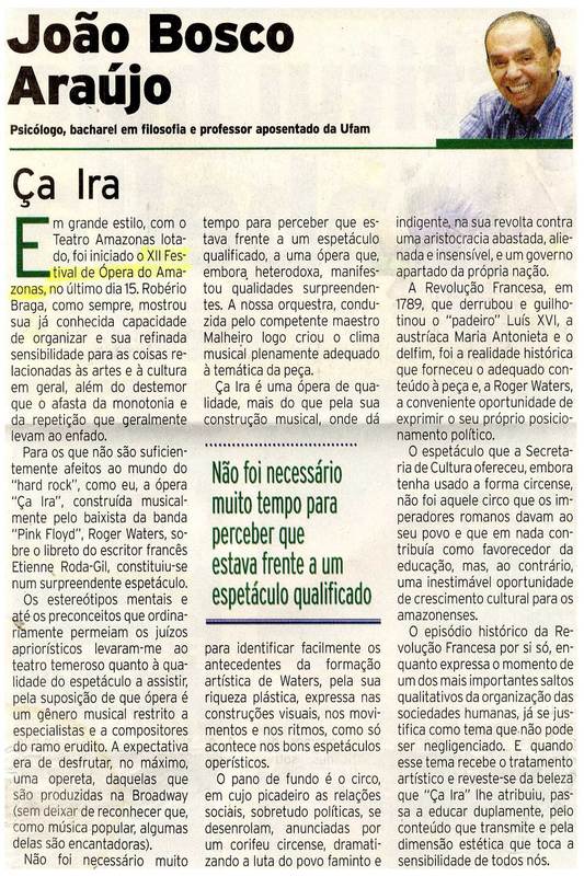 Festival de Ópera, Ça Ira, Teatro Amazonas, Robério Braga, Sec