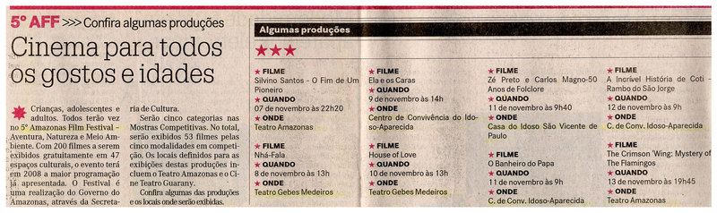 Produções, Cinema, Amazonas Film Festival, SEC, Teatro Amazonas, AFF