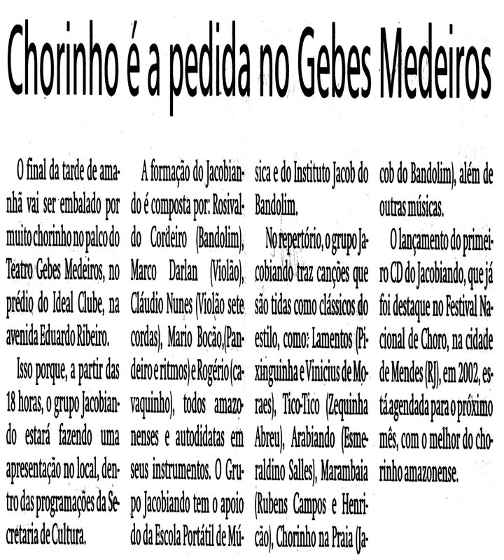 Chorinho, Gebes Medeiros, Ideal Clube, Grupo Jacobiando