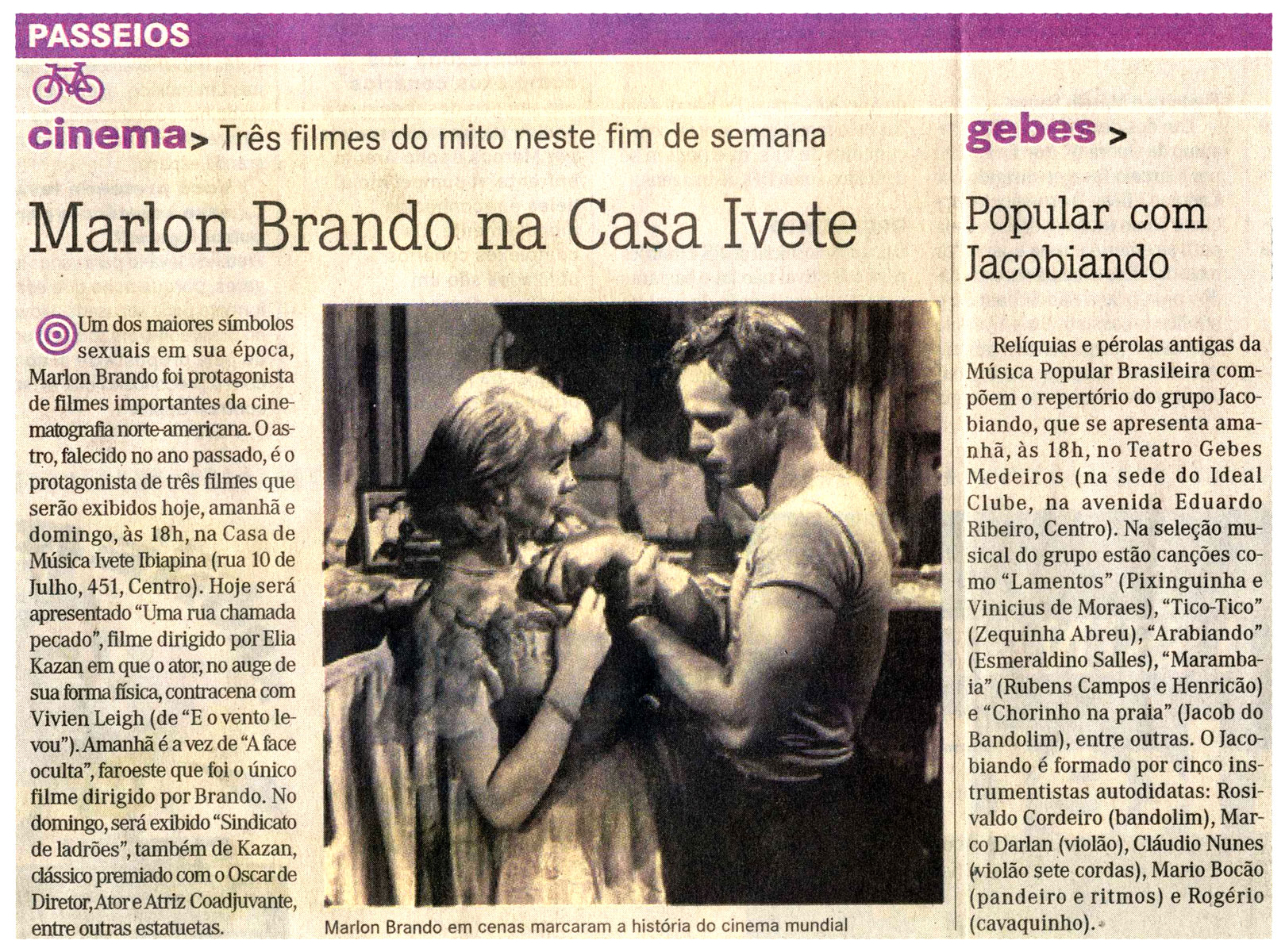 Cinema, Marlon Brandon, Exibição, Casa Ivete Ibiapina, Mpb, Grupo Jacobiando, Teatro Gebes