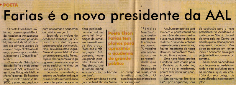 Elson Farias, Poeta, Posse, Presidência, AAL