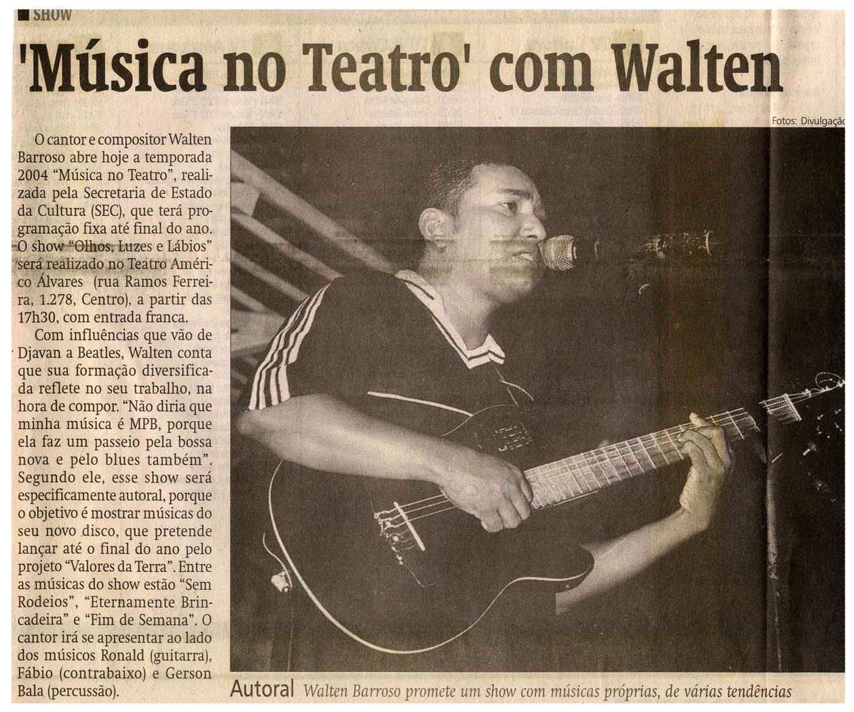 Música, Cantor, Walten Barroso, Sec, Show, Teatro Américo Alvarez, Bossa Nova