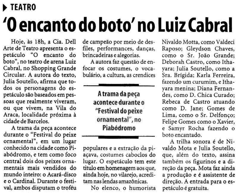 Cia Dell Arte, Espetáculo, O Encanto do Boto, Teatro Luiz Cabral
