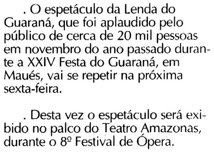 Espetáculo, Lenda do Guaraná, Festa do Guaraná, Teatro Amazonas, Festival de Ópera