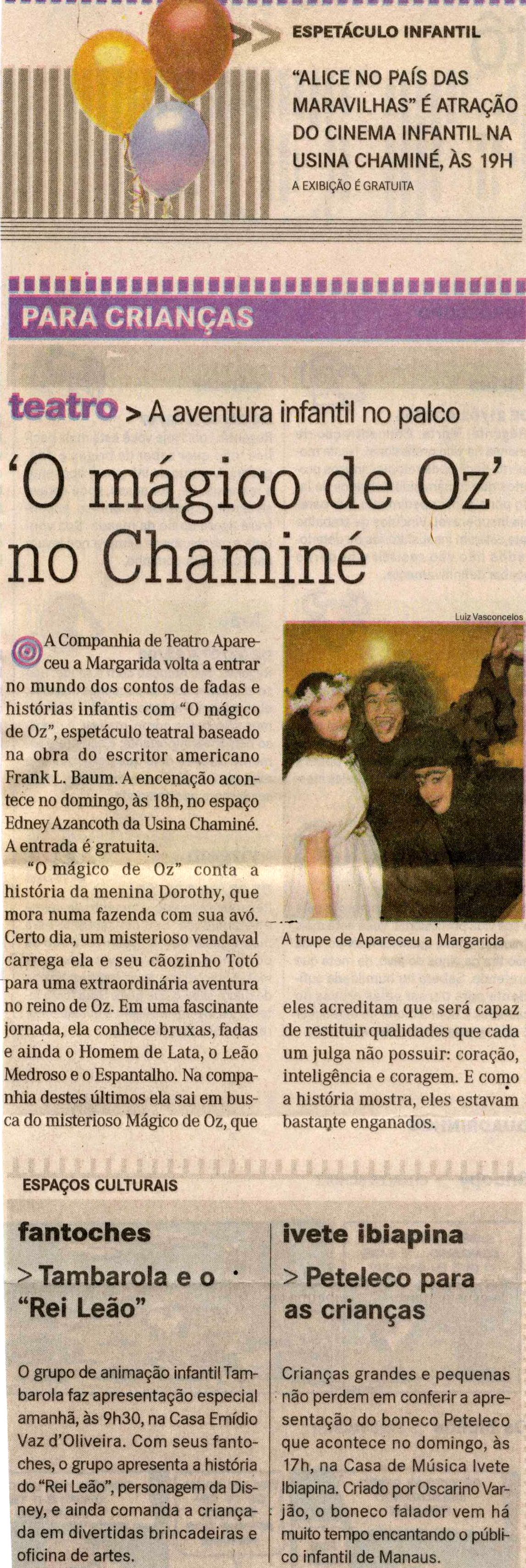Mágico de Oz, Cia Apareceu a Margarida, Usina Chaminé, Filme, Casa Emídio Vaz, Casa Ivete Ibiapina