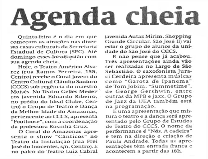 Atrações, Sec, Teatro Américo Alvarez, Coral, Teatro Gebes Medeiros, Teatro da Instalação, Largo São Sebastião
