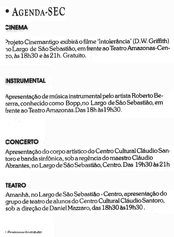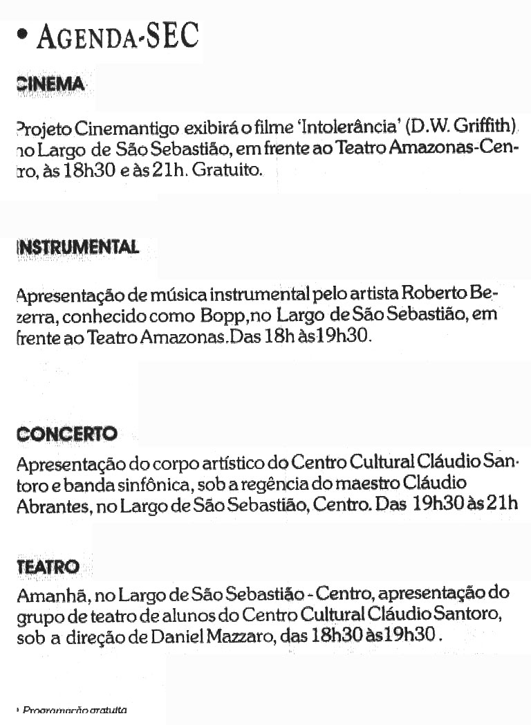 Agenda, Projeto, Cinemantigo, Música, Roberto Bezerra, Concerto, Teatro