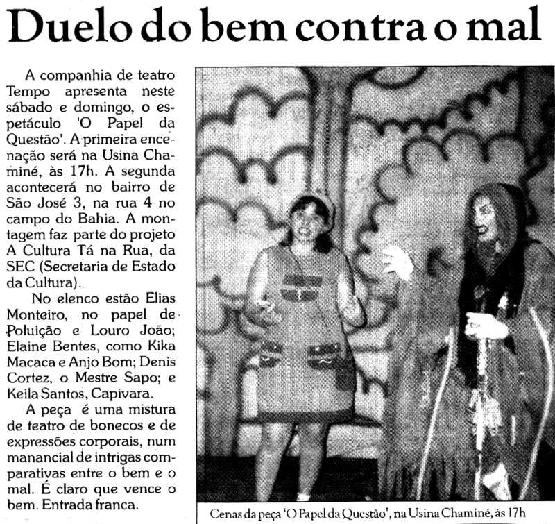 Cia de Teatro Tempo, Espetáculo, Usina Chaminé, Projeto, A Cultura ta na Rua
