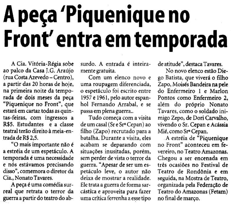 A Peça ''Piquenique no Front'' Entra Em Temporada