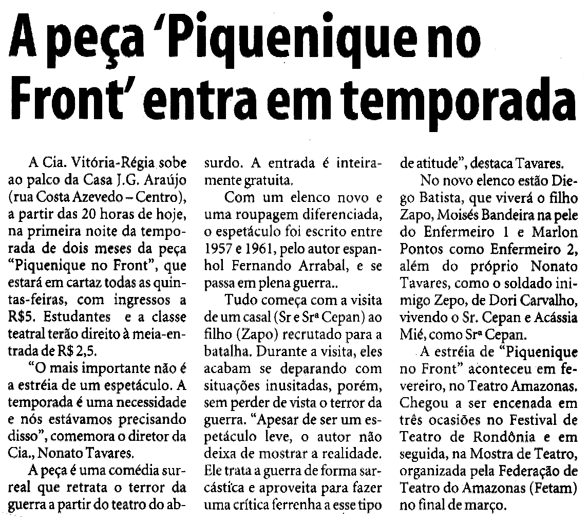 Cia Vitória Régia, Casa J.G. Araújo, Peça, Piquenique, Comédia