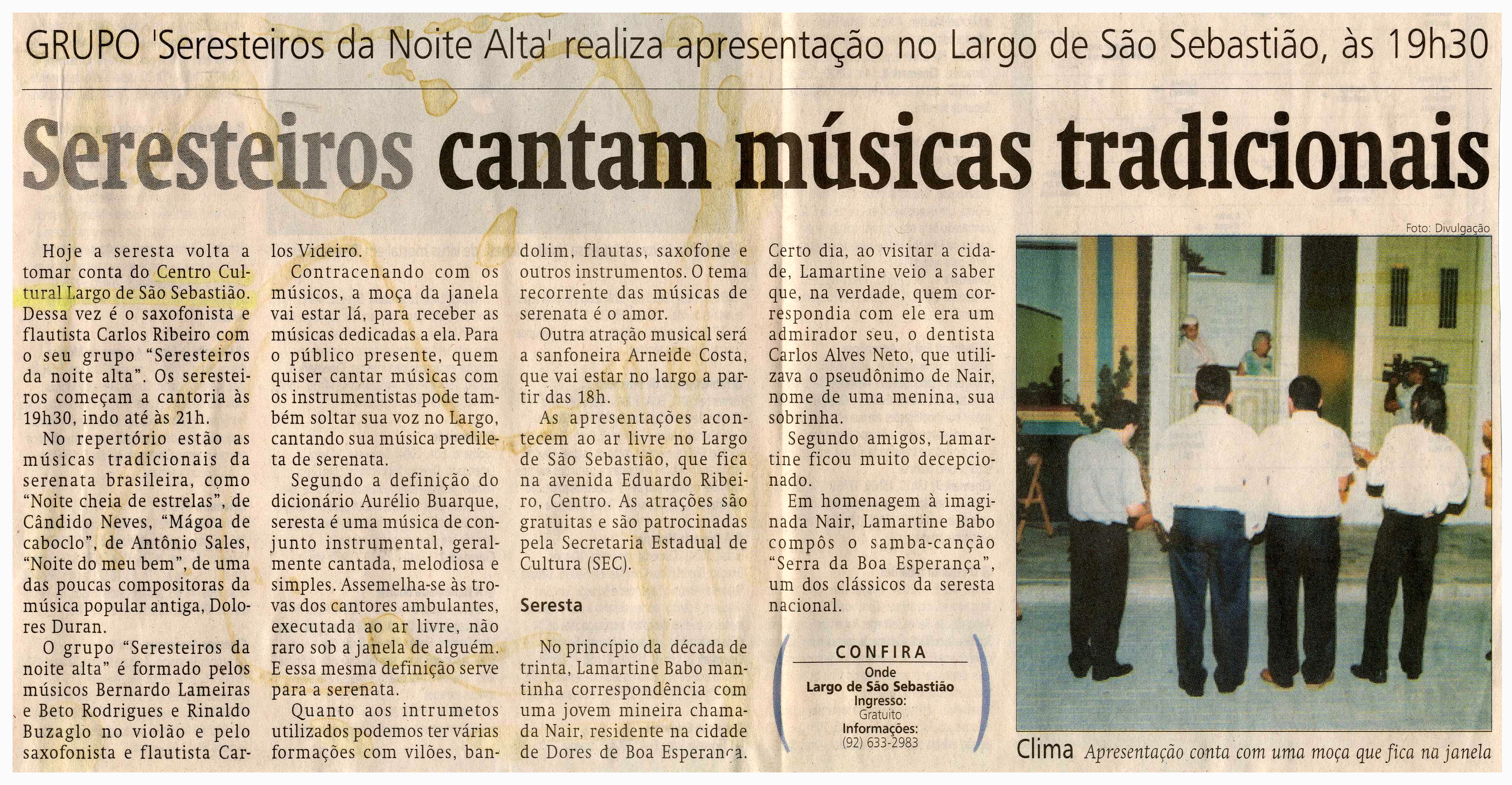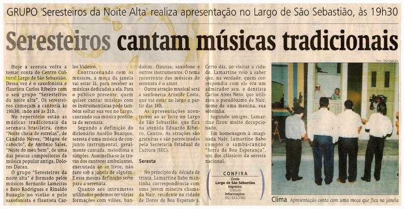 Largo São Sebastião, Seresta, Músicas, Tradicionais