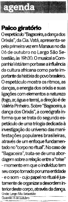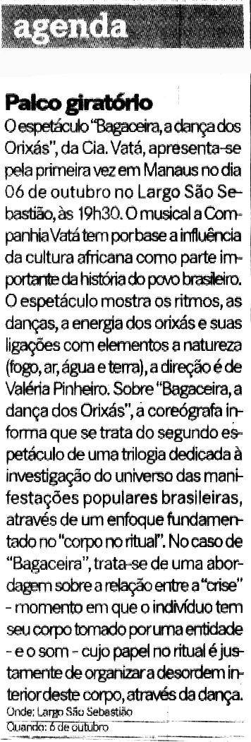 Palco Giratório,Espetáculo,bagaceira,orixás,Manaus,Largo São Sebastião,Ritmo,Valeria Pinheiro