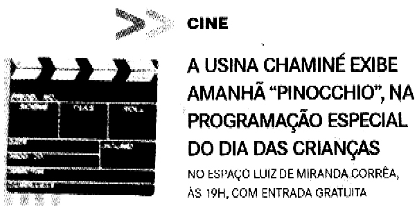 Usina Chaminé,Pinocchio,programação,especial,dias das crianças,cine