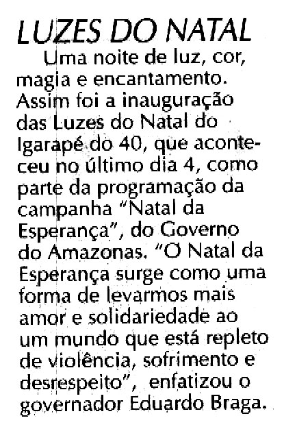 Natal, Igarapé do 40, Programação, Esperança, Eduardo Braga