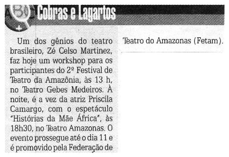 Zé Celso Martinez, Workshop, Teatro Gebes Medeiros, Priscila Camargo, Espetáculo, Teatro Amazonas
