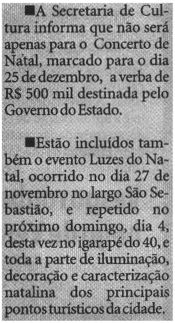 Secretaria de Cultura, Concerto de Natal, Governo do Estado, Largo São Sebastião
