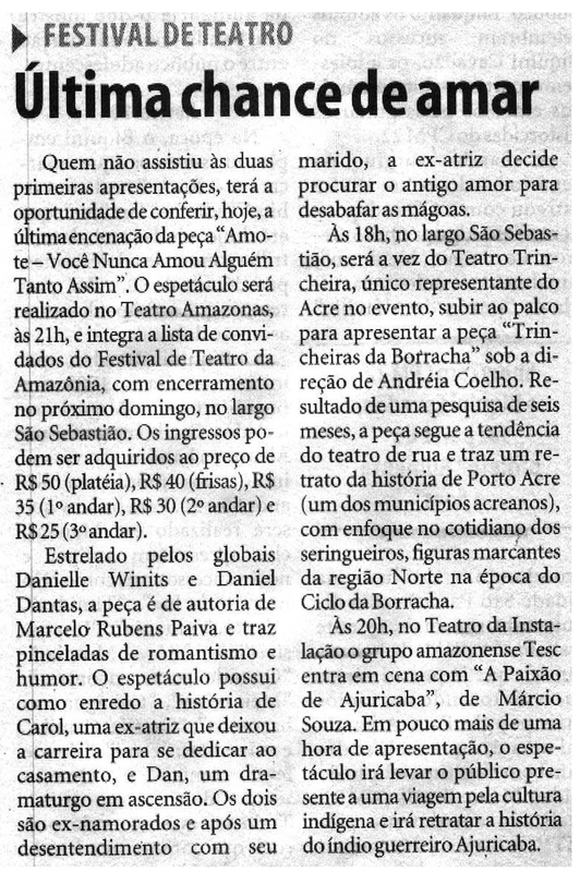 Festival de Teatro, Espetáculo, Teatro Amazonas, Danielle Winitz, Daniel Dantas, Largo São Sebastião
