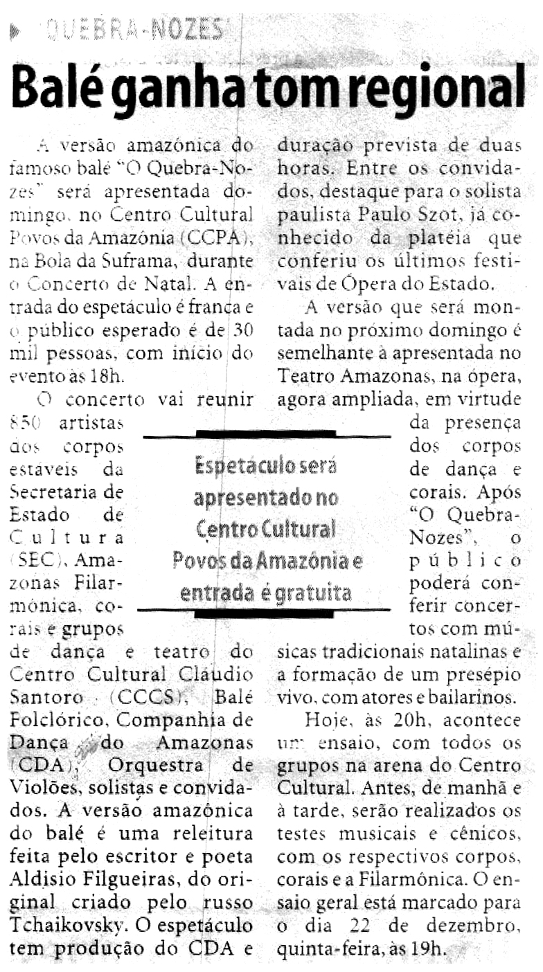 Balé, Centro Cultural Povos da Amazônia, Concerto de Natal, Sec, CDA, Orquestra