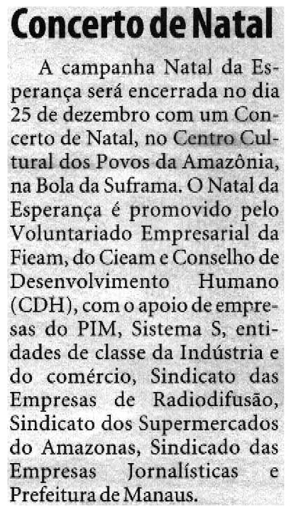 Concerto, Natal da Esperança, Centro Cultural Povos da Amazônia, CDH, Prefeitura de Manaus