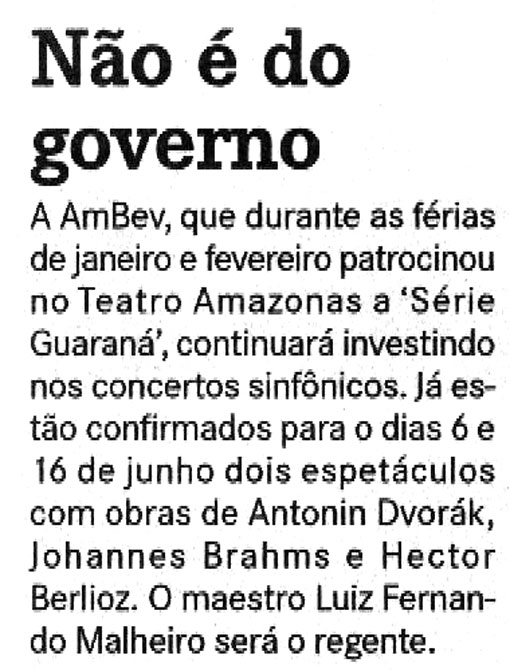 Ambev, Patrocínio, Teatro Amazonas, Série Guaraná, Espetáculo, Luiz Fernando Malheiro, Maestro