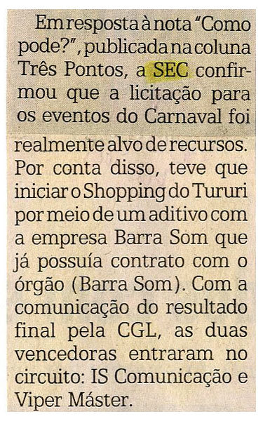 Resposta, Orlando Farias, Licitação, Carnaval, Barra Som