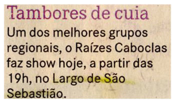 Tambores, cuia, Raízes Caboclas, Largo São Sebastião