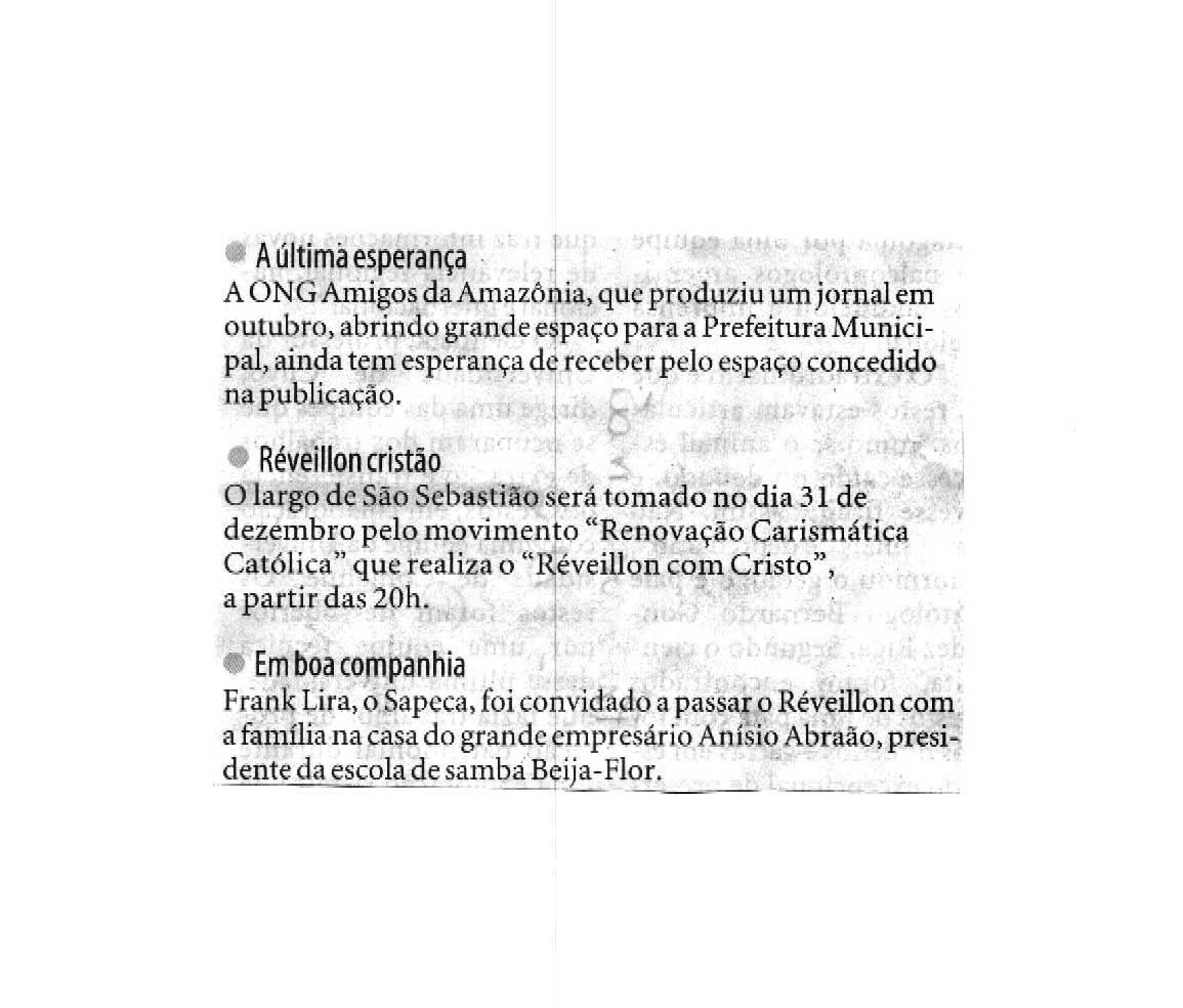 Ong Amigos da Amazônia, Largo São Sebastião, Reveillon Cristão