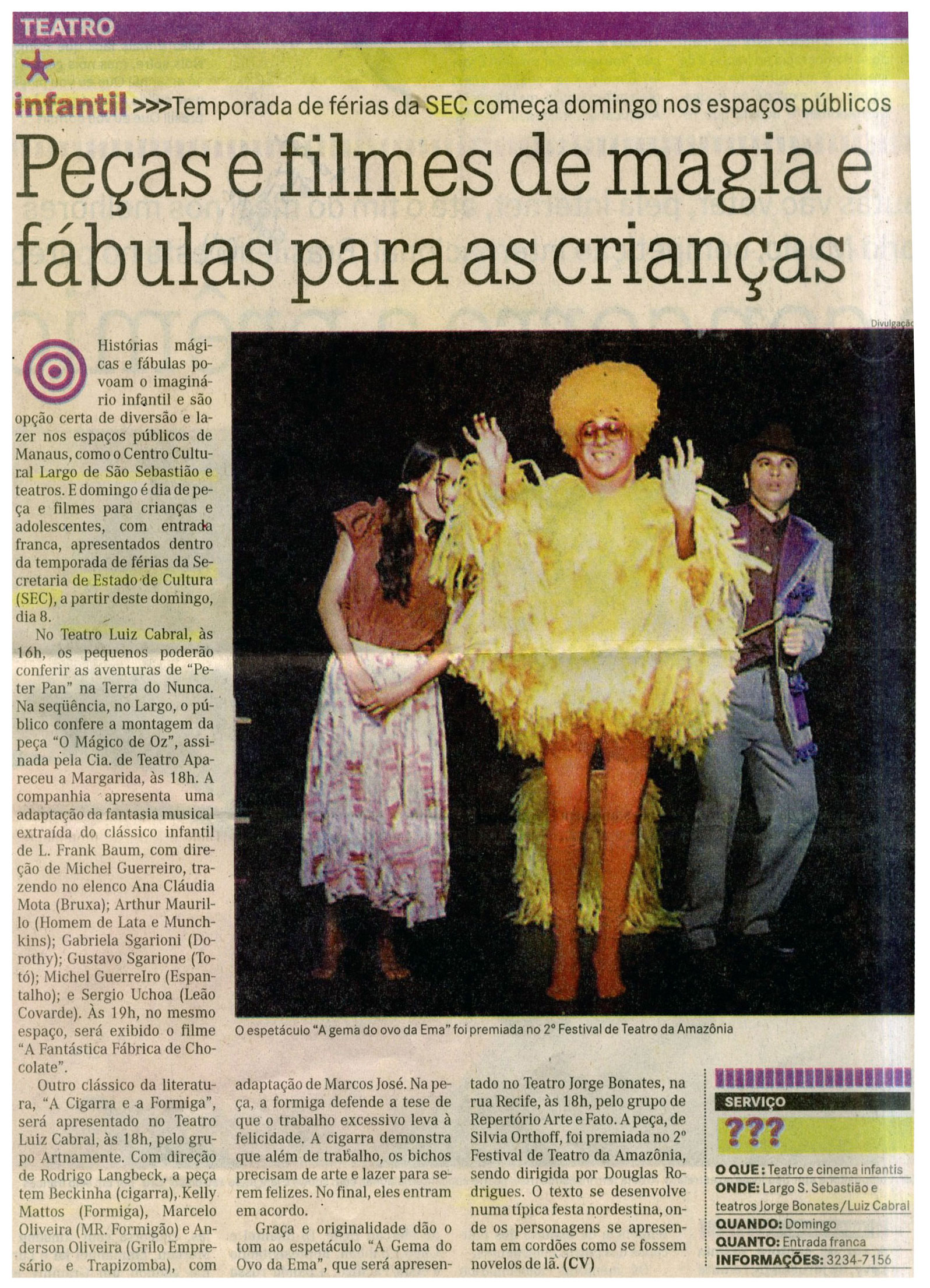 Peças, Filmes, Magia, Largo São Sebastião, SEC, Teatro Jorge Cabral, Teatro Luiz Cabral